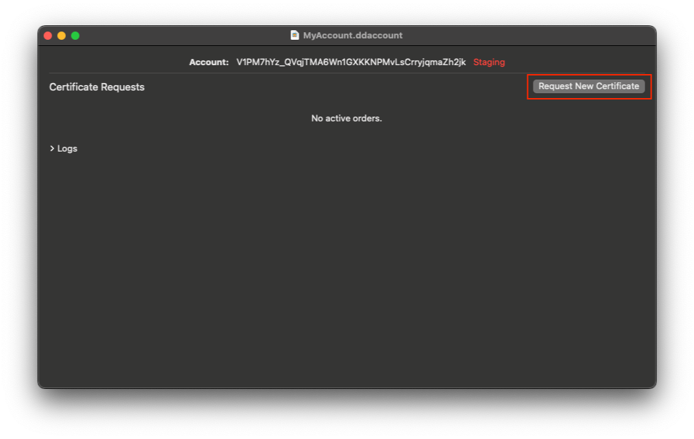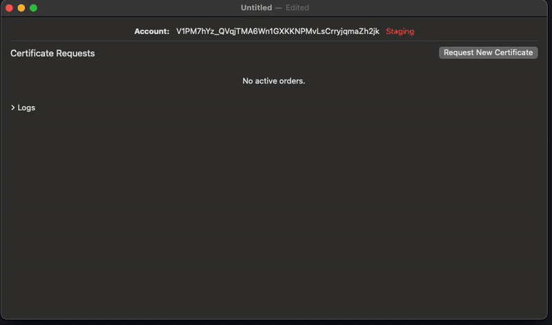 With your new account, you can now Request a new Certificate. Click on Request New Certificate: